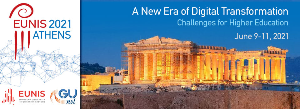 La conférence EUNIS a eu lieu du 9 au 11 juin 2021, en ligne. Elle a été organisé par le Réseau des universités grecques (GUnet).